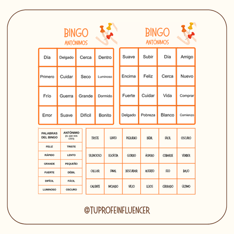 Bingo de ANTÓNIMOS